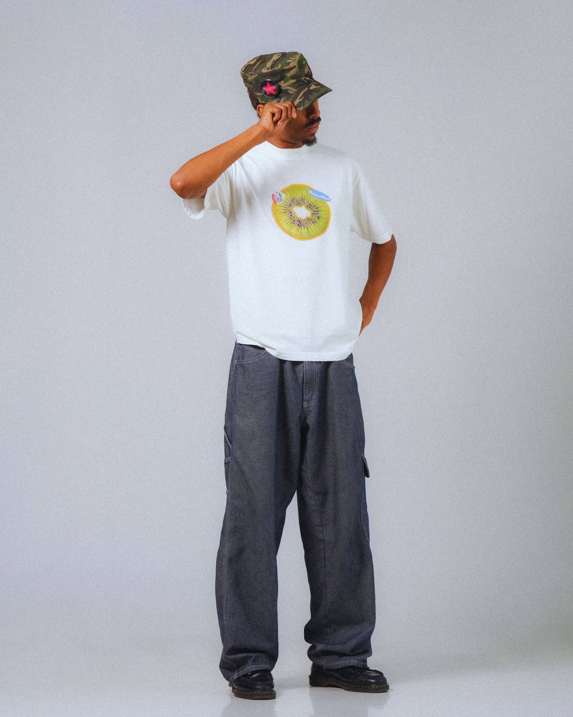 A Fitted long sleeve top with a fresh kiwi graphic.